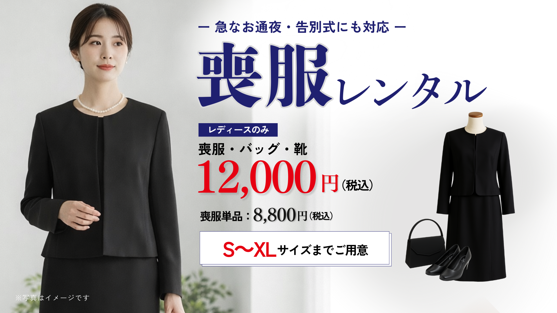 急なお通夜・葬儀でも安心の喪服レンタルをご用意しています